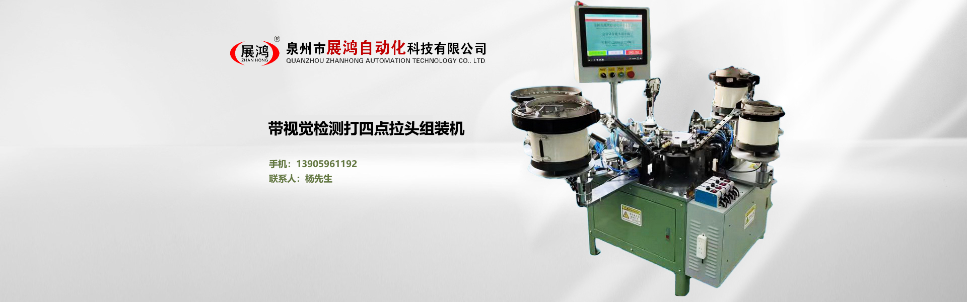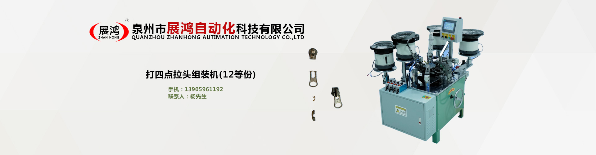 ??泉州市展鴻自動(dòng)化科技有限公司始創(chuàng)于2003年,是一個(gè)集研發(fā)、制造、銷(xiāo)售為一體的現(xiàn)代化公司,專(zhuān)業(yè)從事研發(fā)、生產(chǎn)各類(lèi)型號(hào)的全自動(dòng)拉鏈頭裝配機(jī)。泉州市展鴻自動(dòng)化科技有限公司始創(chuàng)于2003年,是一家集研發(fā)、生產(chǎn)、銷(xiāo)售、服務(wù)于一體的現(xiàn)代化拉鏈頭設(shè)備智能制造生產(chǎn)企業(yè):專(zhuān)業(yè)從事研發(fā)、生產(chǎn)各類(lèi)型號(hào)的全自動(dòng)拉鏈頭智能裝配機(jī)。亦可根據(jù)不同客戶(hù)的需求,提供適合客戶(hù)自身需要的“私人定制”式專(zhuān)用拉鏈頭設(shè)備及自動(dòng)檢測(cè)拉頭品質(zhì)一體機(jī)。泉州市展鴻自動(dòng)化科技有限公司始創(chuàng)于2003年,是一家集研發(fā)、生產(chǎn)、銷(xiāo)售、服務(wù)于一體的現(xiàn)代化拉鏈頭設(shè)備智能制造生產(chǎn)企業(yè):專(zhuān)業(yè)從事研發(fā)、生產(chǎn)各類(lèi)型號(hào)的全自動(dòng)拉鏈頭智能裝配機(jī)。亦可根據(jù)不同客戶(hù)的需求,提供適合客戶(hù)自身需要的“私人定制”式專(zhuān)用拉鏈頭設(shè)備及自動(dòng)檢測(cè)拉頭品質(zhì)一體機(jī)。